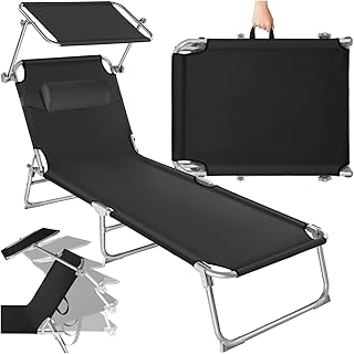 tectake® Sonnenliege mit Dach, Strandliege kla…