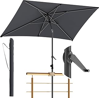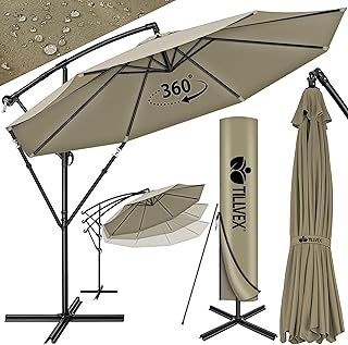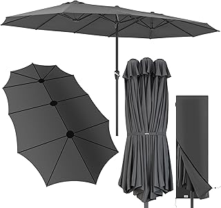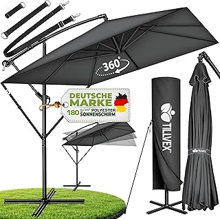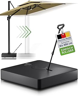Das UV-beständige Polyestergewebe mit wasserabweisender Beschichtung schützt sowohl vor Sonne als auch vor leichtem Regen. Der mittig platzierte Mast aus pulverbeschichtetem Aluminium sorgt für eine gleichmäßige Gewichtsverteilung, während der Kurbelmechanismus ein leichtes Öffnen ermöglicht. Mit einem Preis von etwa 279 Euro bietet dieser XXL-Sonnenschirm ein gutes Preis-Leistungs-Verhältnis für seine Größe.