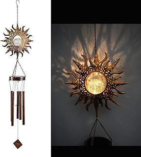- Klassische Solar-Windspiele mit Klangröhren: Metallröhren oder Stäbe erzeugen harmonische Klänge und leuchten abends in verschiedenen Farben