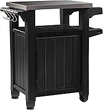 Diese vielseitigen Grilltische für draußen bieten neben einer geräumigen Arbeitsfläche auch Stauraum in Form von Schubladen oder Unterschränken. Hier können Sie Grill Zubehör Sets, Gewürze und kleinere Utensilien verstauen. Die meisten Modelle verfügen zudem über Haken zum Aufhängen von Grillwerkzeug und Handtüchern.