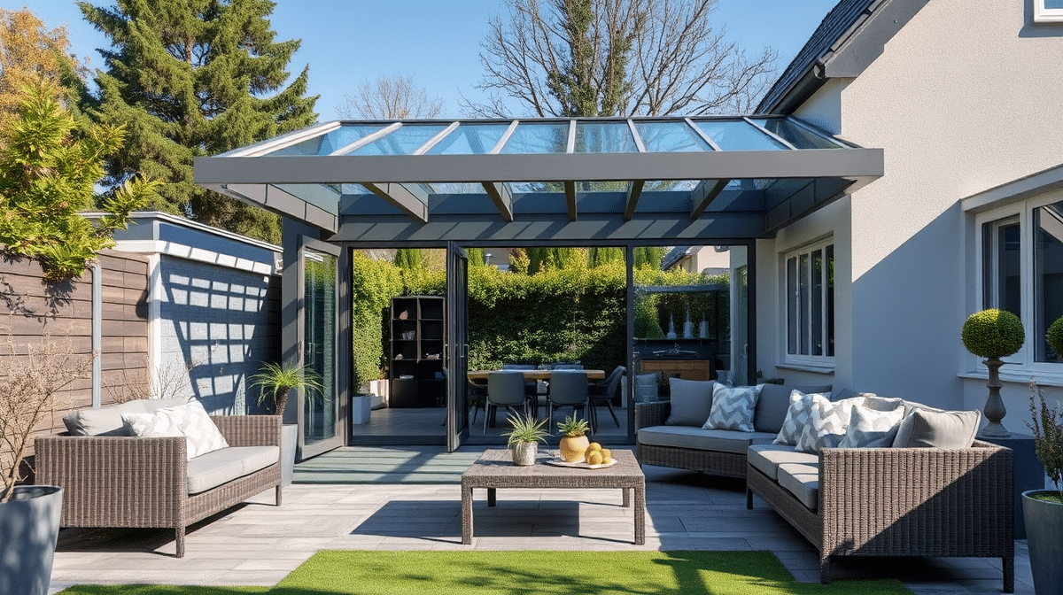 Terrassenüberdachung mit Wintergarten-Effekt Eine Terrassenüberdachung mit Wintergarten-Effekt verbindet das Beste aus zwei Welten: den Schutz einer klassischen Überdachung mit dem Wohngefühl eines vollwertigen Wintergartens – und das zu deutlich geringeren Kosten. Diese clevere Lösung erfreut sich bei Gartenbesitzern zunehmender Beliebtheit, da sie einen geschützten Außenbereich schafft, der deutlich länger im Jahr genutzt werden kann. In…
