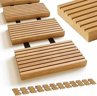 Tatami-inspirierte Teppiche: Diese greifen das Design klassischer japanischer Reisstrohmatten auf, sind aber für den Außeneinsatz optimiert. Die charakteristische Webstruktur und der leicht erhöhte Rand sind typische Erkennungsmerkmale dieser Variante.